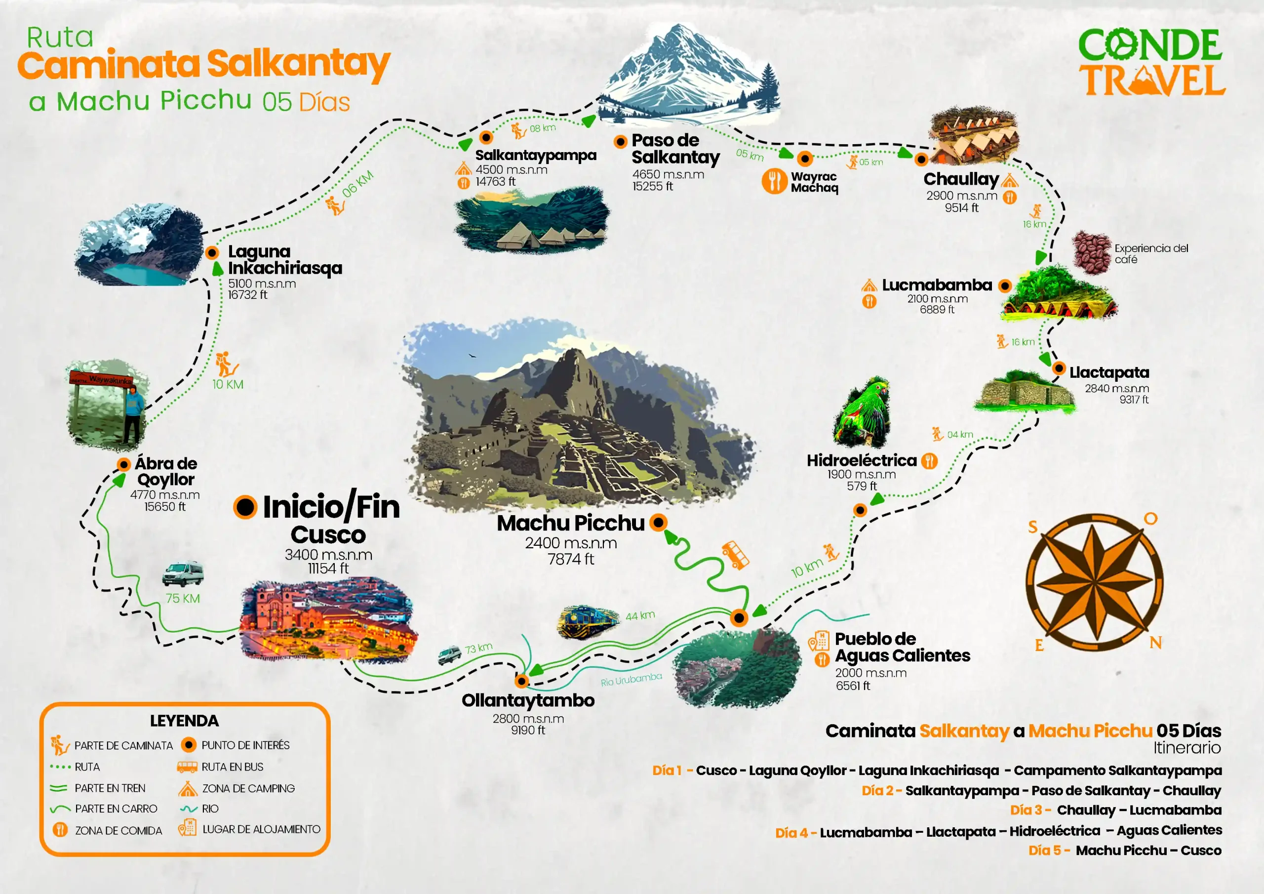 Aunque no es necesario ser un atleta profesional, recomendamos tener una forma física moderada, ya que la ruta incluye terrenos montañosos y grandes altitudes, lo que puede resultar exigente.