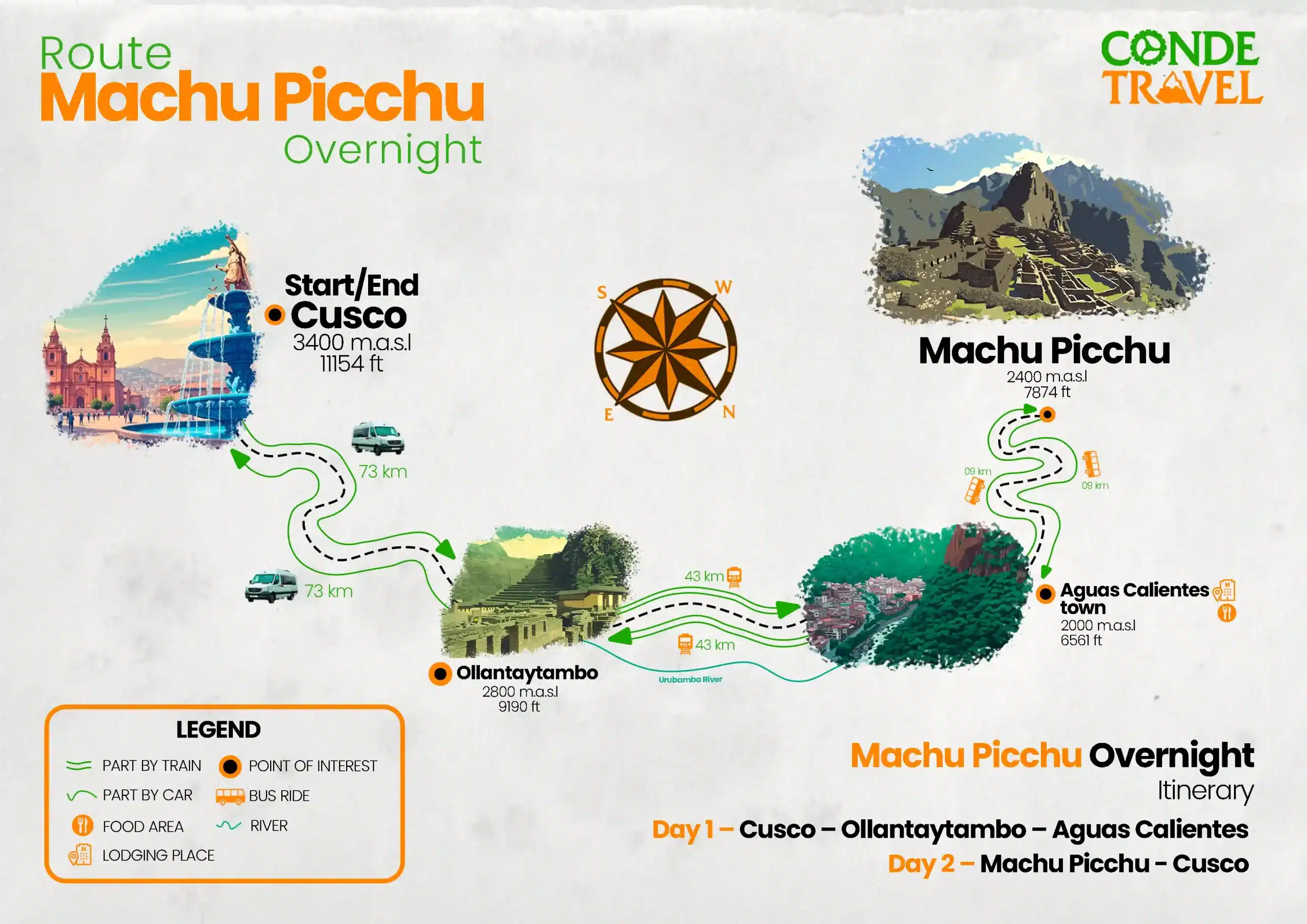 Machu Picchu by train in the nighttime, with Aguas Calientes as its final destination, allows you to embark on a thrilling adventure through the valleys and harsh landscapes of the Andes, meanwhile relaxing in the comfort and warmth of a coupe as you marvel at the scenery. This way you can fully enjoy one of the wonders of the world without the hassle, waits, walks and long bus rides that are usually necessary to reach the crown jewel of Peru and of the world!