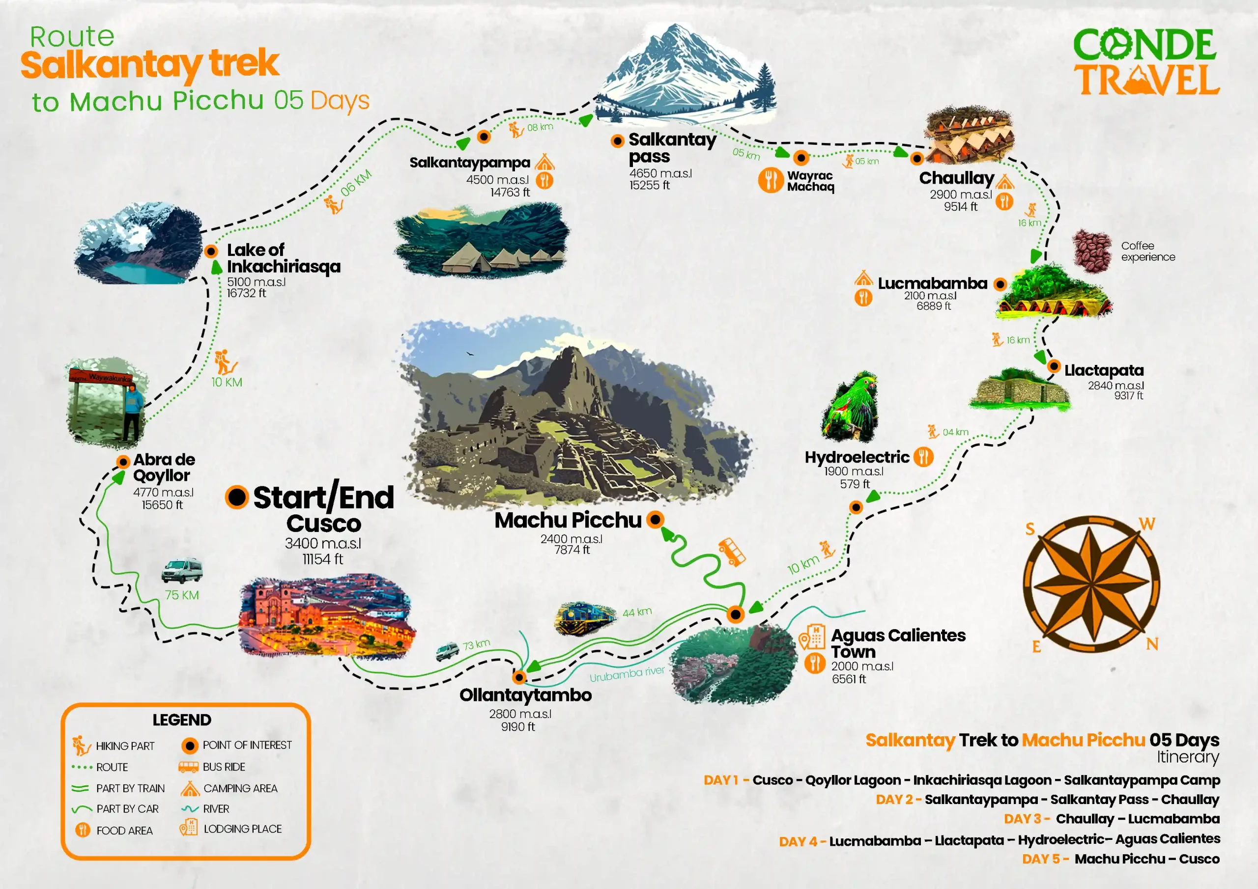 The Inkachiriasqa Pass is one of the highest points on the Salkantay Trek , reaching 5,100 meters above sea level. From this pass, you can enjoy spectacular views of the snow-capped Salkantay and the surrounding glaciers. It is a challenging but rewarding section of the Inkachiriasqa Lagoon trek.